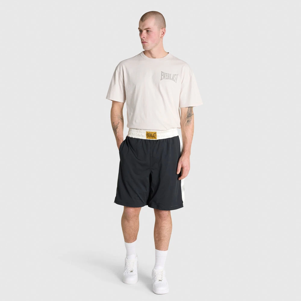 Where the ring meets the streets, the Everlast Greatness Mesh Boxing Short channels the oversized energy of 90s NYC. Part of the Everlast XL range, these shorts blend basketball and boxing influences with a bold streetwear silhouette. Made from 100% polyester open mesh for breathability, they feature a contrast satin waistband and side panels for a nod to classic fight gear. Finished with woven label branding on the waistband and side pockets, this oversized fit delivers impact in every detail.